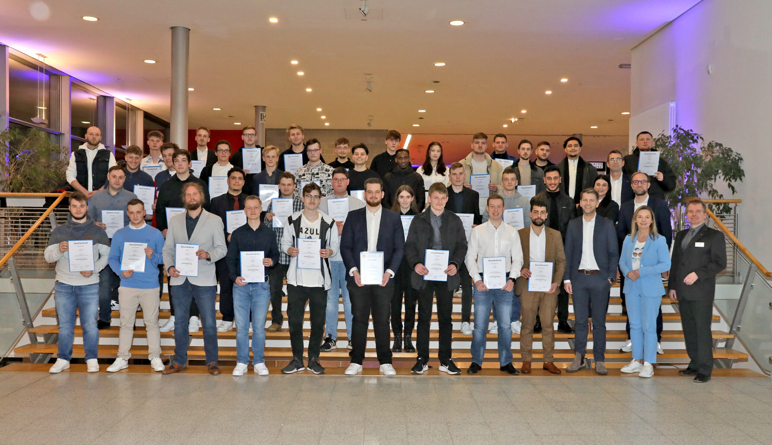 Wolfsburg, CongressPark, Kreishandwerkerschaft Helmstedt-Wolfsburg, Freisprechung Wolfsburg, Gruppenfoto aller heute freigesprochenen Gesellinnen und Gesellen, 05032024, Foto: Michael Uhmeyer, Photographie mpu 2024 / Kreishandwerkerschaft Helmstedt – Wolfsburg 2024